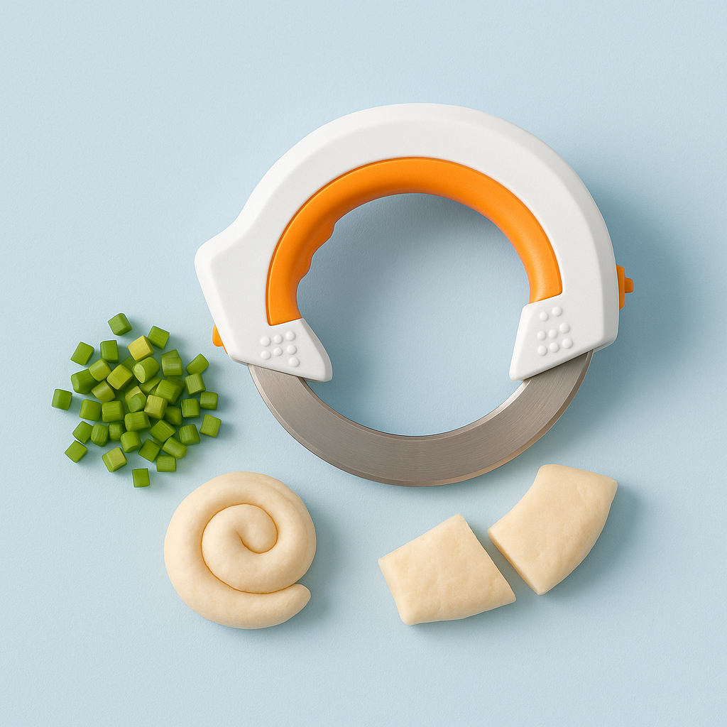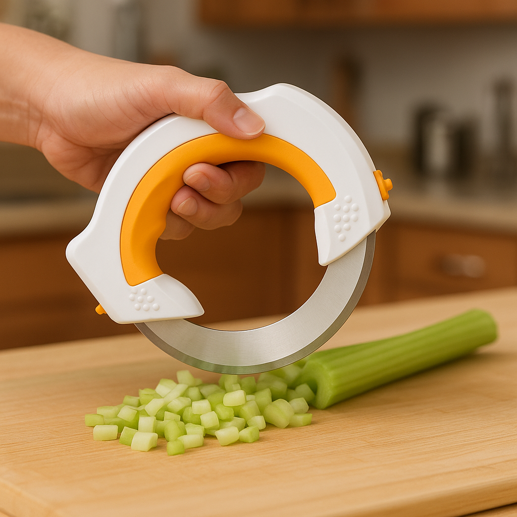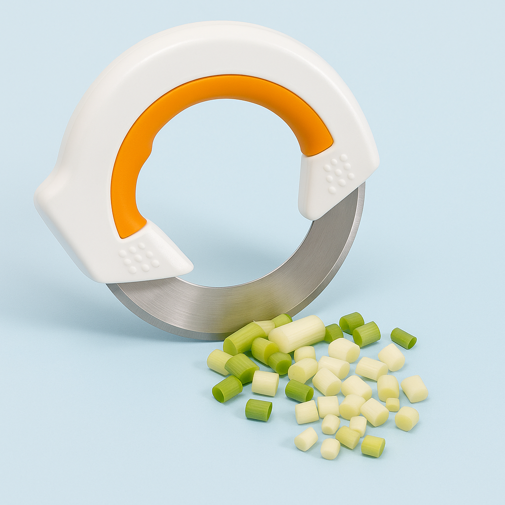 El Samurai360™ gira 360° y corta hacia adelante y atrás, permitiendo un corte fluido, rápido y con menos esfuerzo. Ideal para verduras, carnes, hierbas y hasta masas. Con soporte incluido para mantener tu cocina siempre ordenada.